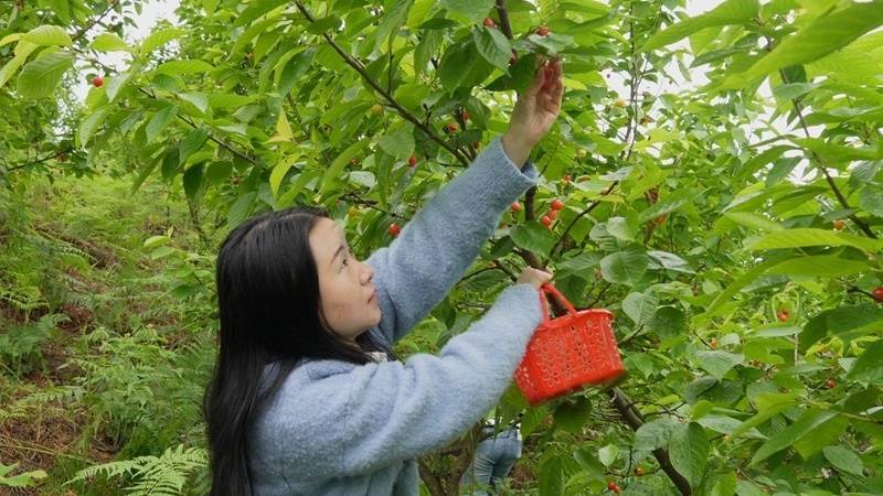 “听说这里的樱桃成熟了,我约了两三个朋友过来现场采摘,果肉非常饱满。我采了一筐,带回去给家人一起品尝一下。”游客梁艳准捧着自己采摘的樱桃,满心欢喜。